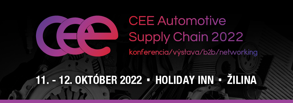 Pozývame vás na piaty ročník podujatia CEE Automotive Supply Chain 2022, ktoré sa uskutoční na Slovensku v Hoteli Holiday Inn, Žilina 11. - 12. októbra 2022.