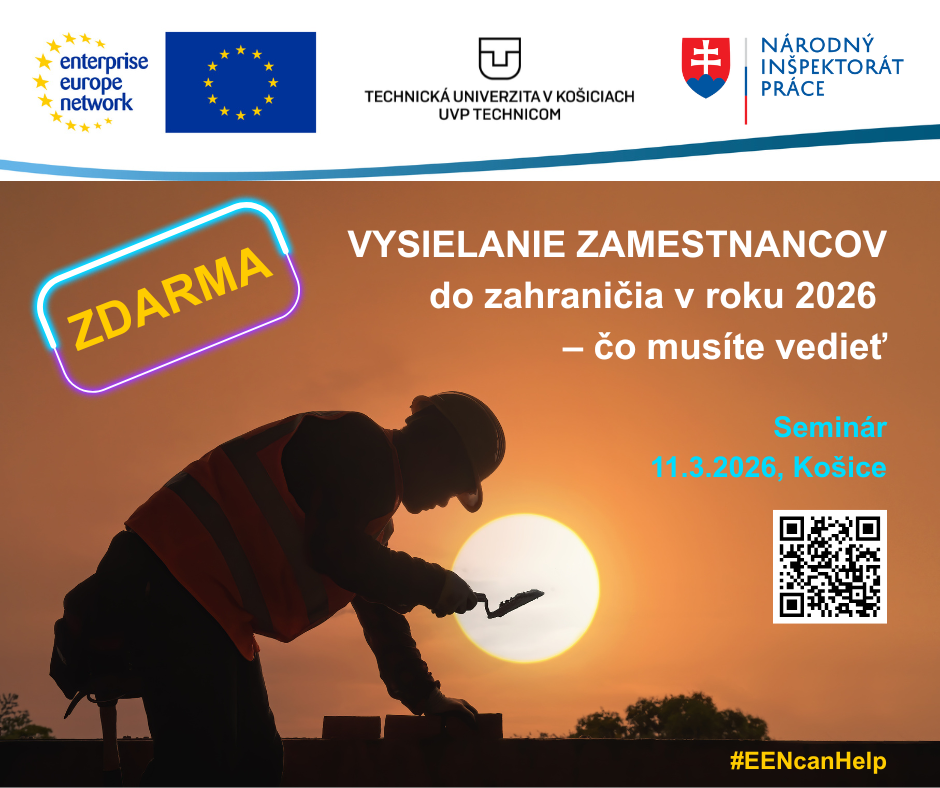 Prihlásiť sa je možné vyplnením on-line prihlášky do 9.3.2026 (10:00 hod.) Seminár sa koná v rámci aktivít siete Enterprise Europe Network a je pre podnikateľské subjekty, ktoré majú ambíciu medzinárodne rásť ZDARMA.